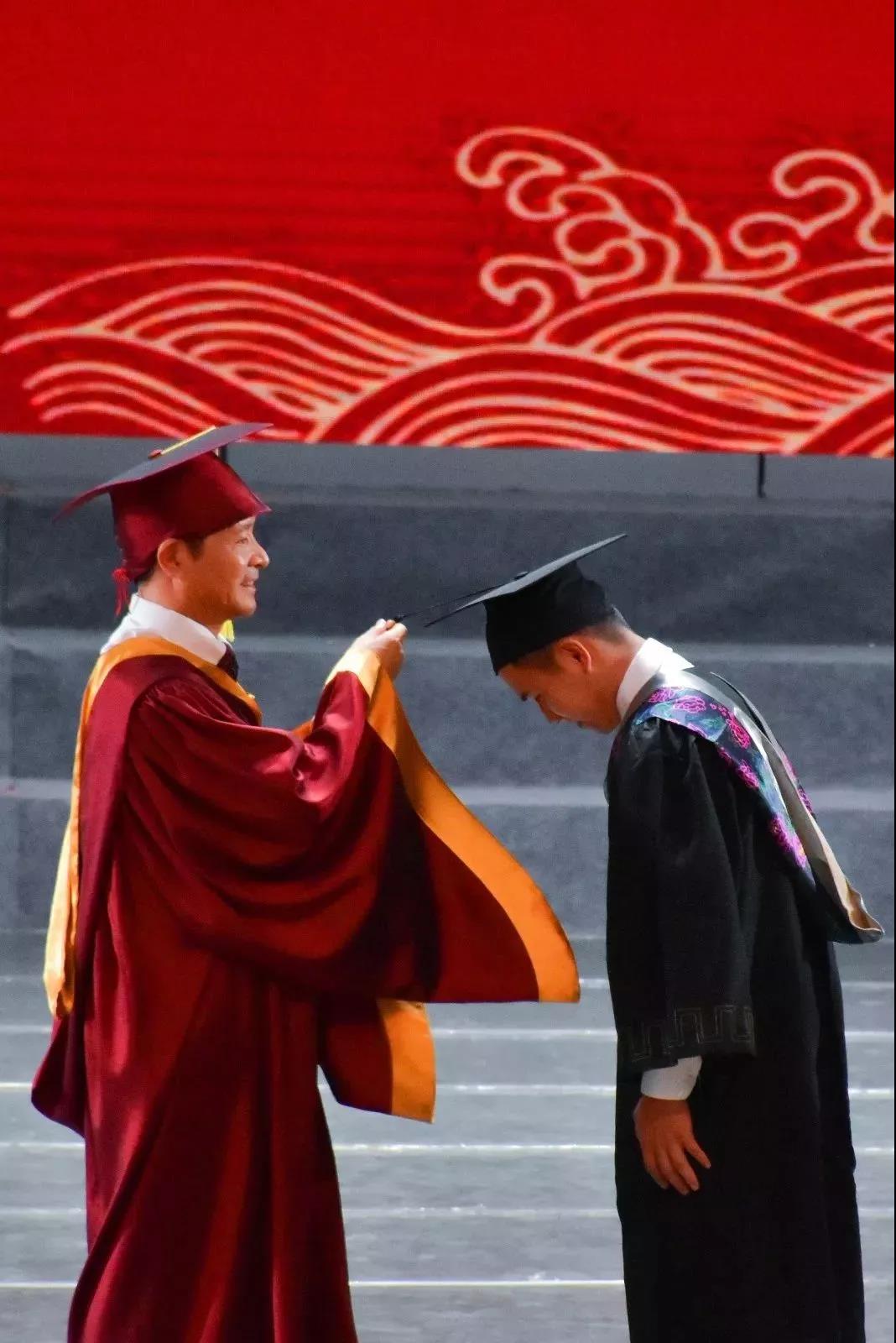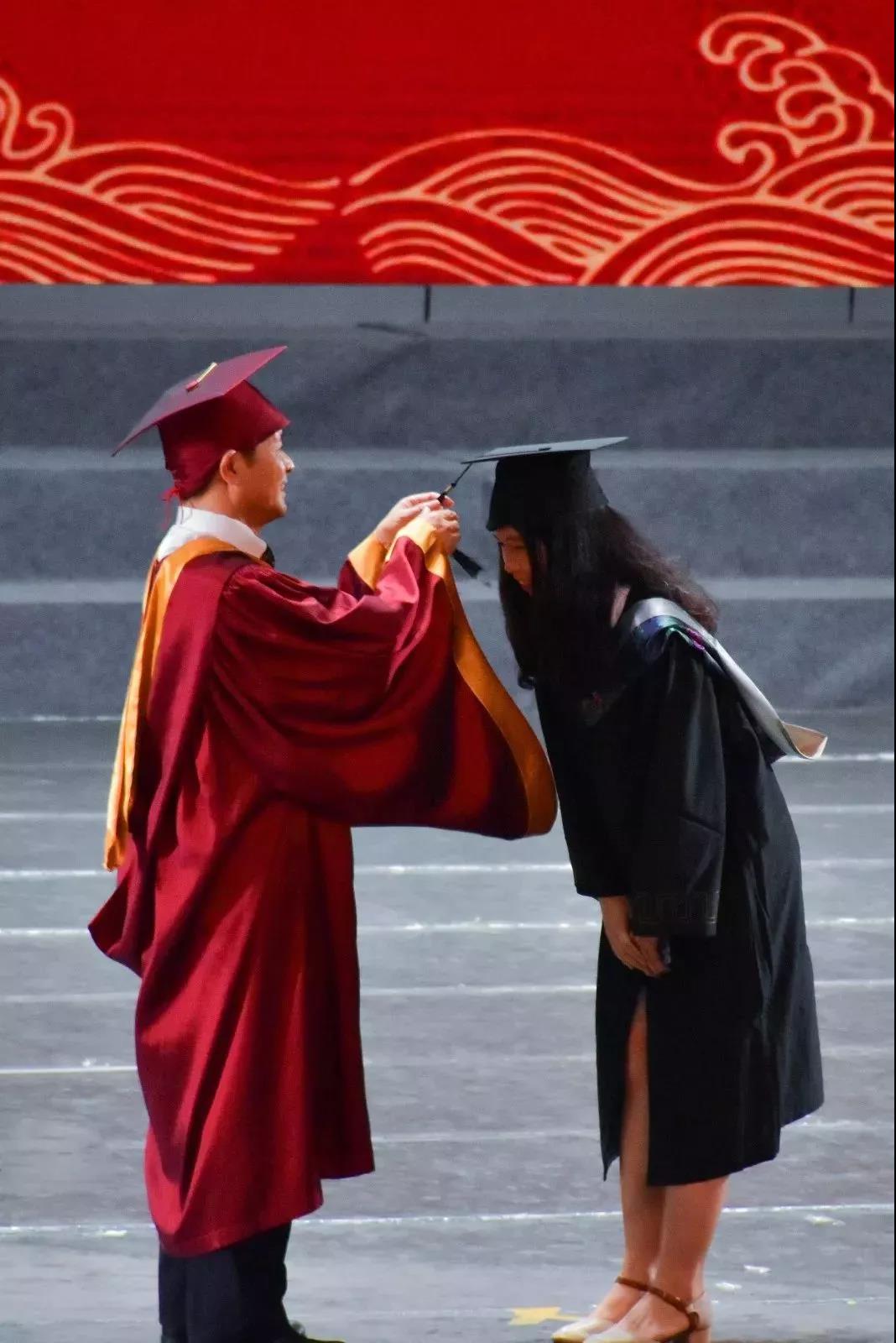 2019年6月23日下午3点,化学与环境学院2019届毕业生学位授予仪式在中歌小剧场顺利召开。在颁发学位证书之前,还有一项礼节性动作——拨穗。