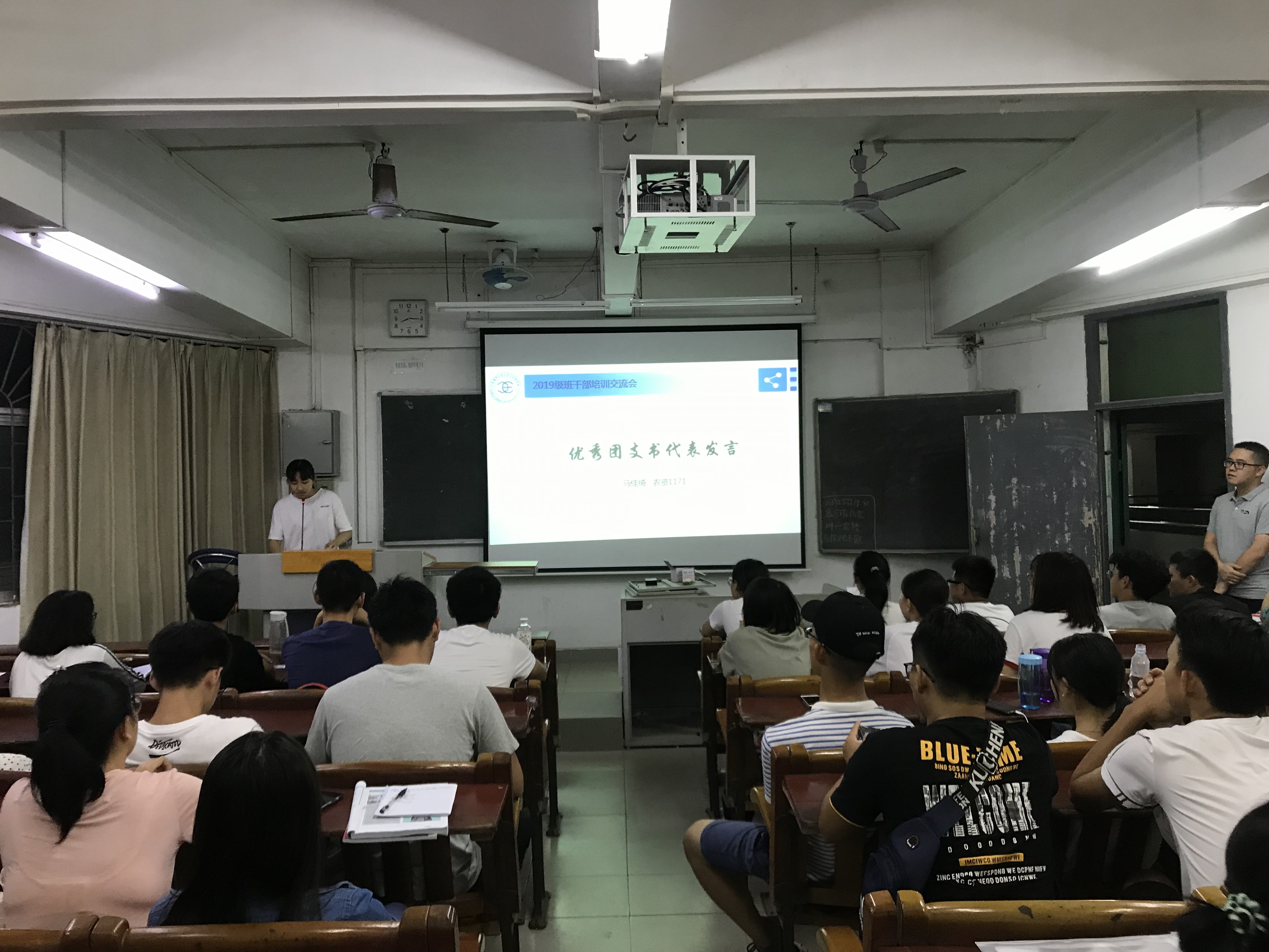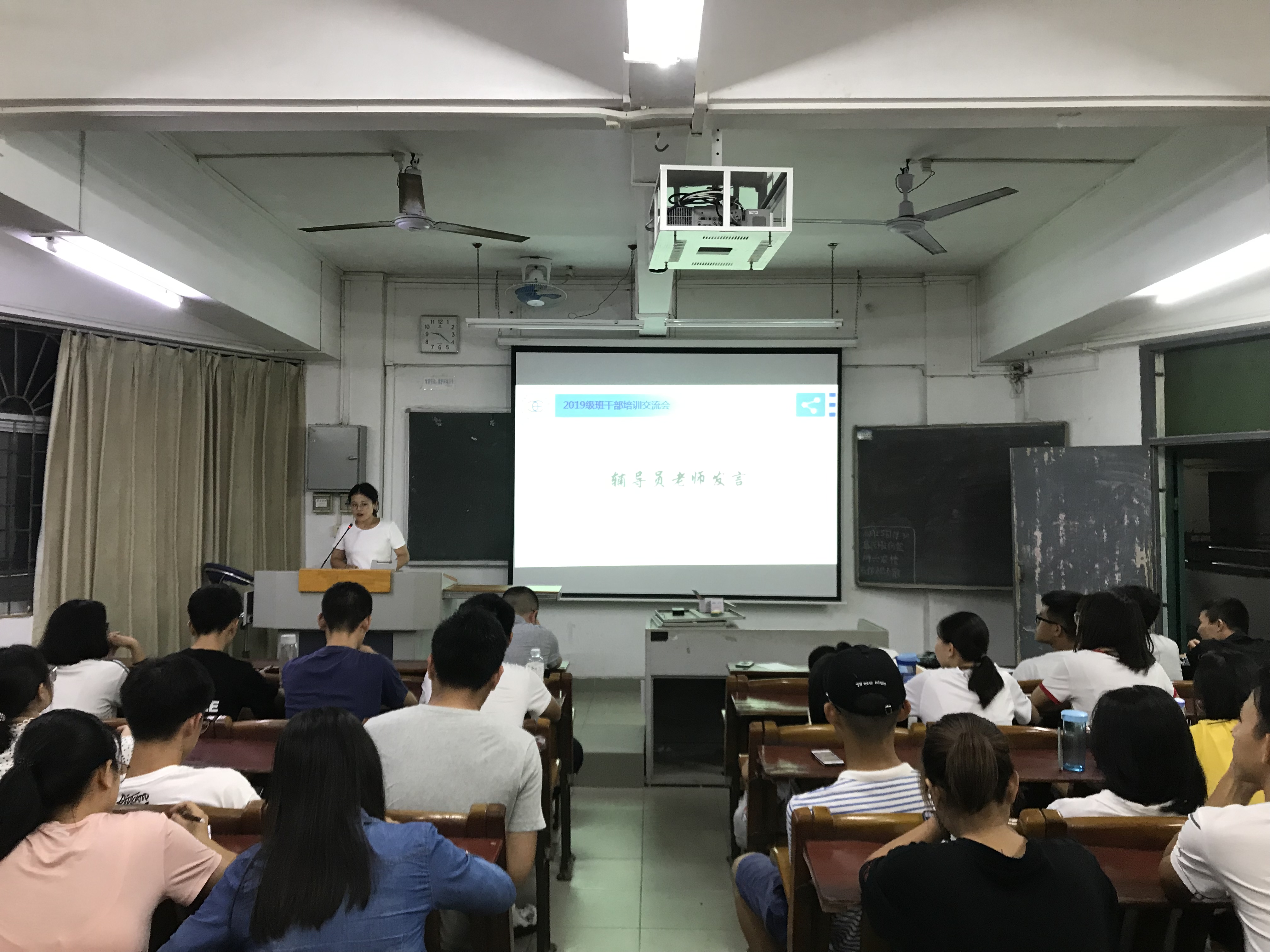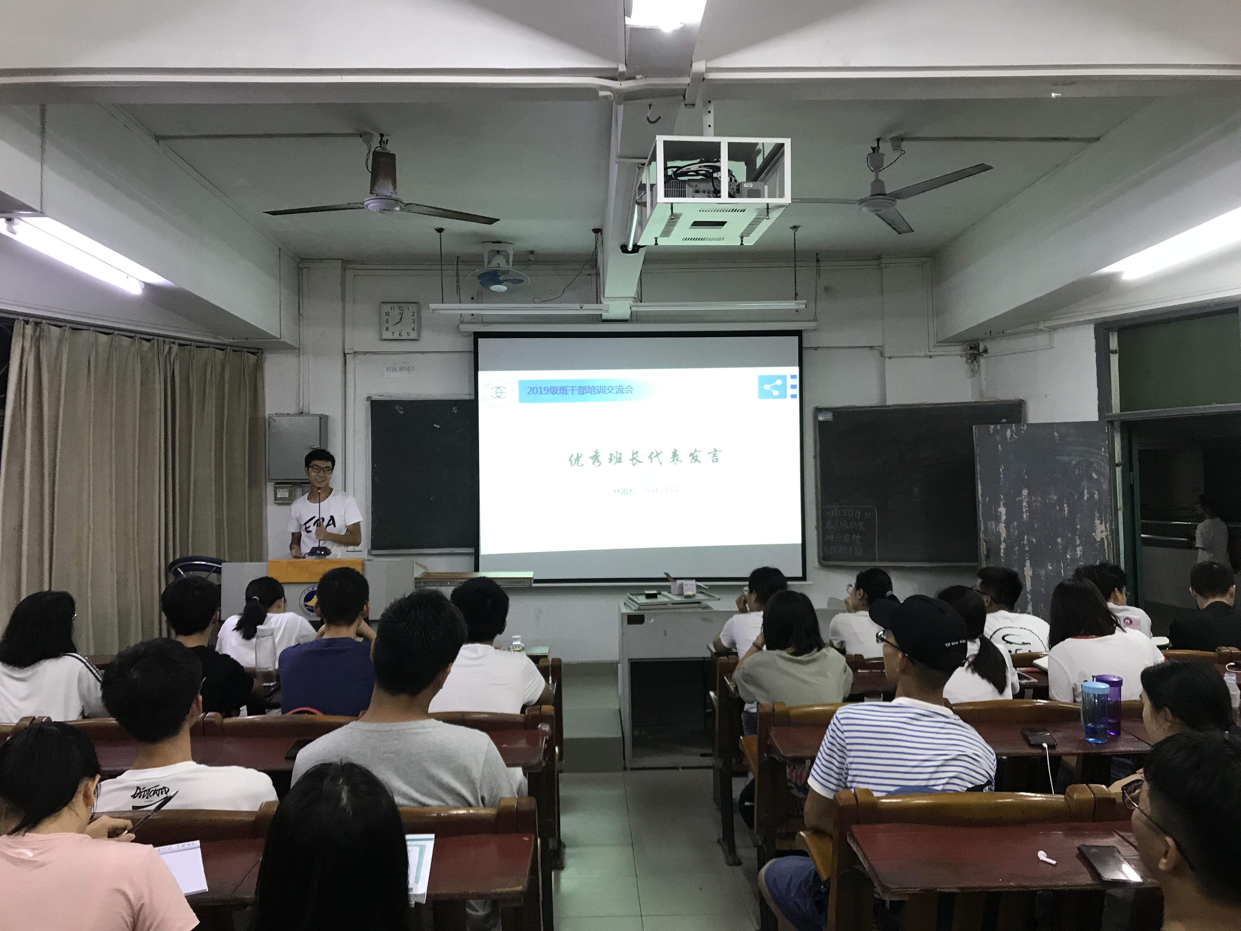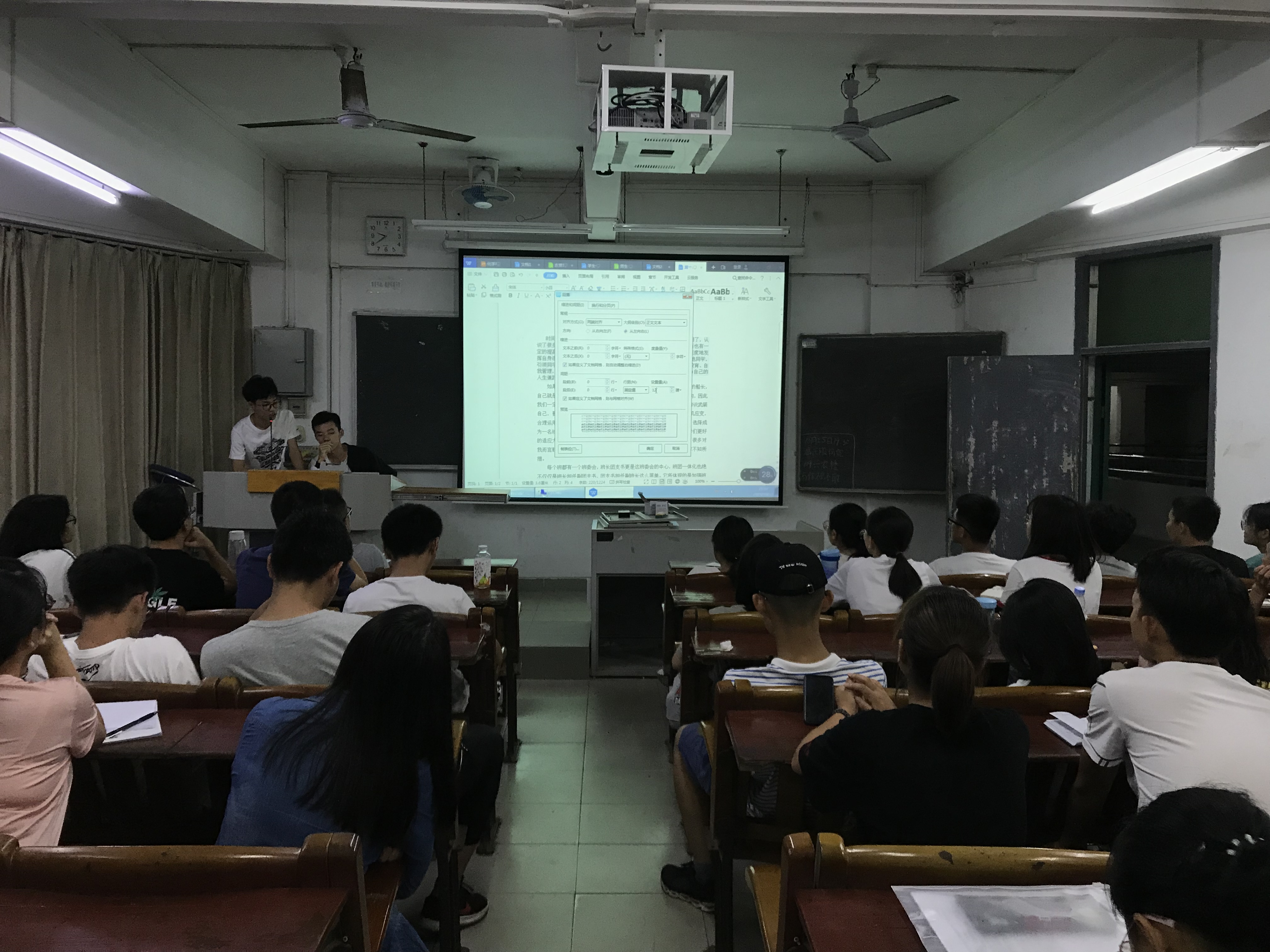 晚上 8:00,在主楼211室,优秀班干部马佳琦、梁倩瑜等2名同学,从思想上、行动上、心态上讲述了各自工作经历和心得。辅导员助理为大家进行了Excel、Word等办公软件的使用培训,针对如何排版、调整格式等进行了操作演示。
