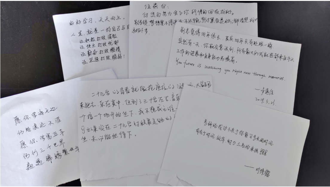 活动得到了同学们的热切回应,活动刚开始已征集了上百条寄语,同学们通过纸媒和微信QQ等不同形式,将自己对大学四年的留恋,对学习和生活的感悟汇成一段段文字,表达自己对师弟师妹的爱意、心声、祝福和鼓励,希望他们珍惜现在,把握当下,广交益友,充实自我。