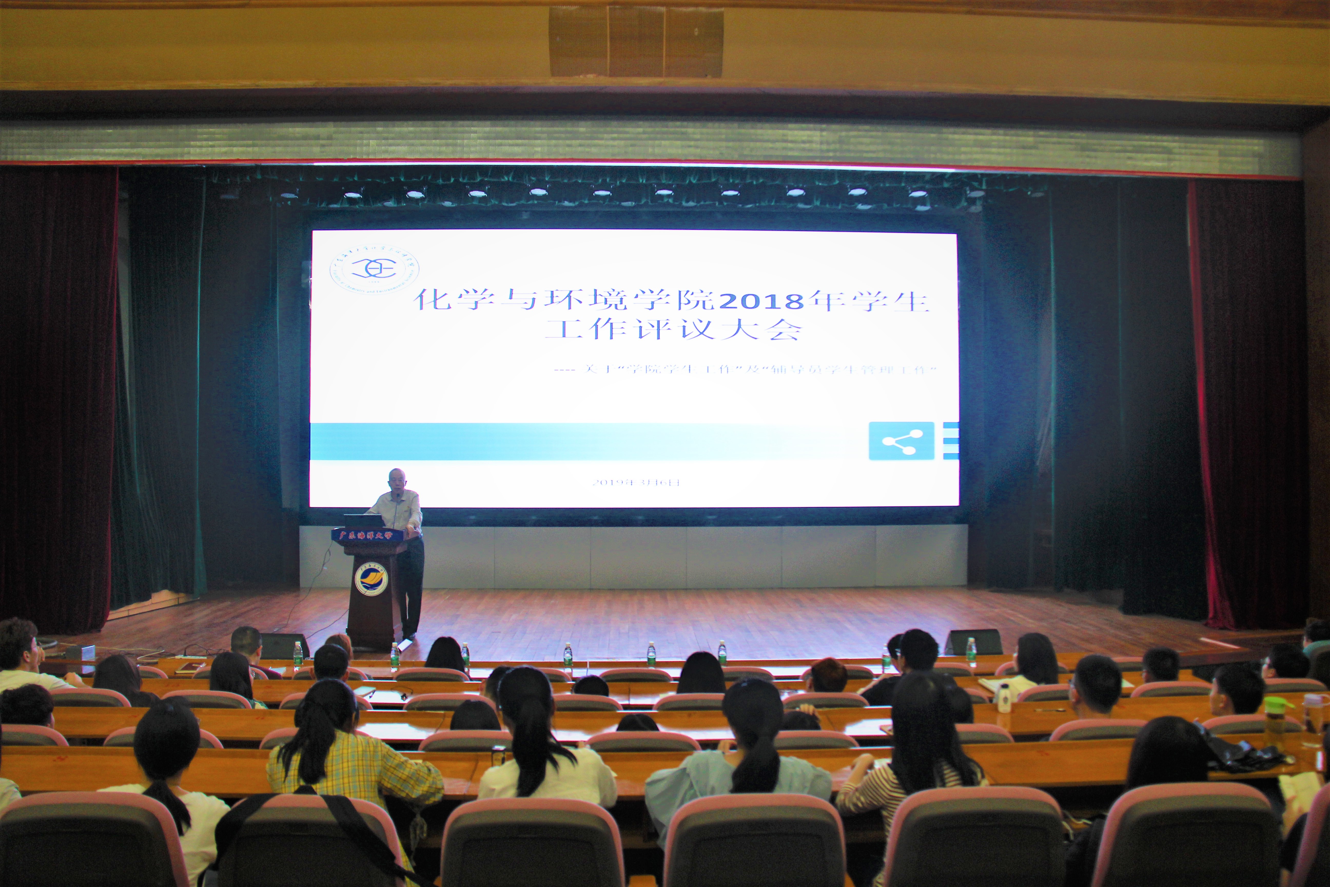 3月6日下午,化学与环境学院在多功能厅,举行williamhill英国官网评议大会,对2018年学院williamhill英国官网和辅导员工作进行评议。会议由学院党总支副书记柯伟主持,参会人员包括学院党员代表、团委学生会干部、各班团支书和班长及学生代表共148人。