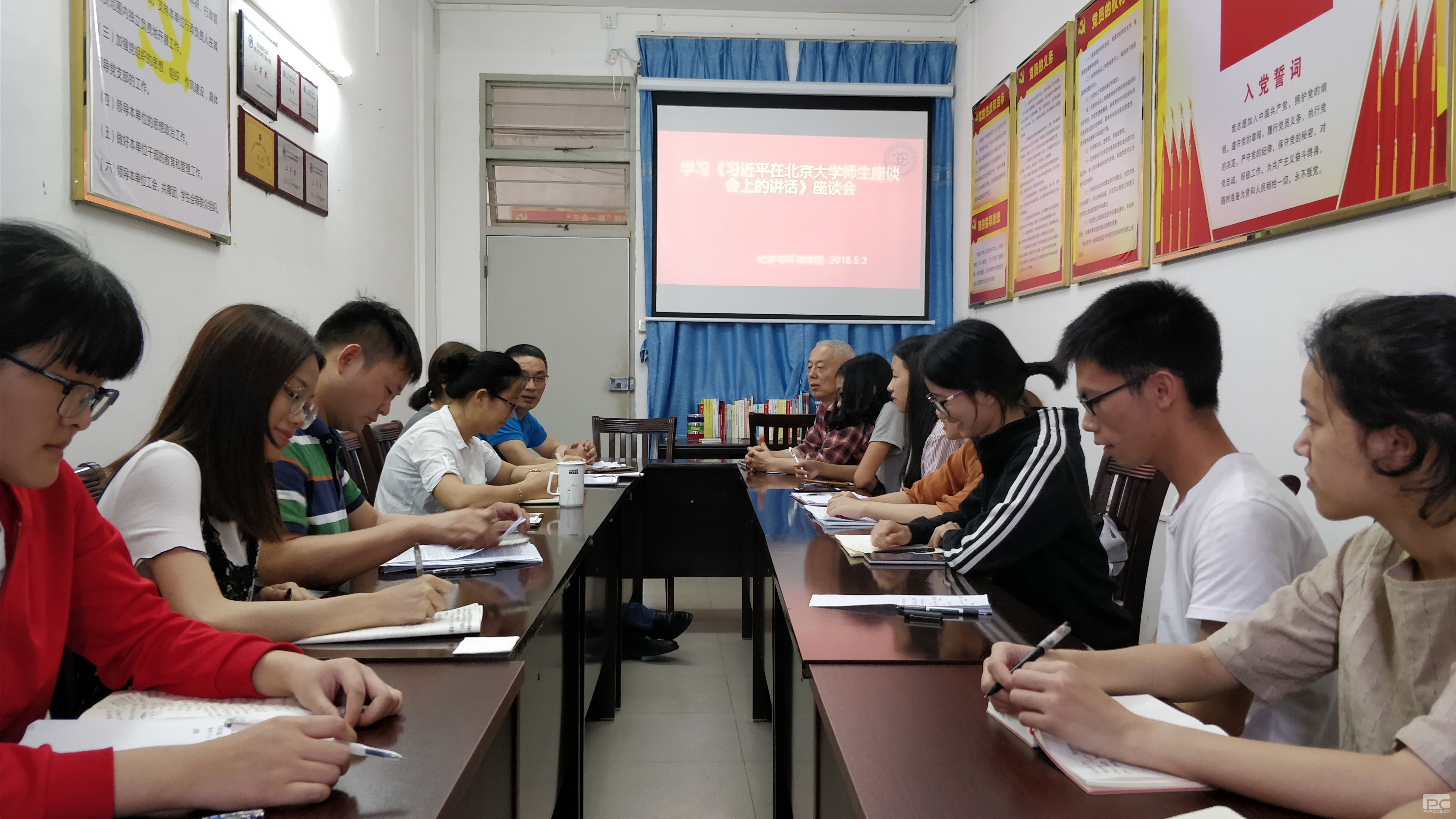 5月3日下午,化学与环境学院在科技楼310会议室,组织学习习近平总书记在北京大学师生座谈会上的讲话。学院党总支书记张懿出席会议,学院全体辅导员老师及学生党支部委员、学生党员、团委学生会主要干部、团支部书记等代表参加了学习座谈会。会议由学院党总支副书记柯伟主持。