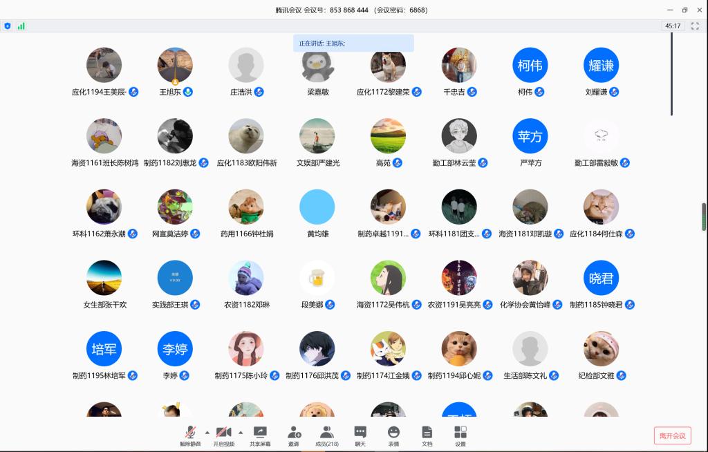 4月19日晚,化学与环境学院在腾讯会议室召开疫情防控期学生干部大会,学院党委副书记柯伟、全体辅导员、各班班主任、学生党支部委员、各班团支书和班长、团委学生会副部长和易班工作站副站长以上人员、辅导员助理共221人参加。会议由学院团委书记王旭东老师主持。