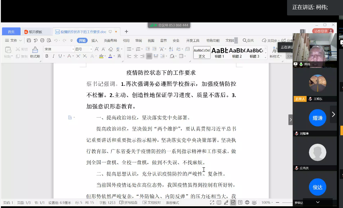 柯伟传达了学院党委书记蔡鹰的工作指示,提出在此疫情防控状况下的四点工作要求:一、提高政治站位,坚决落实党中央部署;二、提高思想认识、充分认识疫情防控的严峻性、复杂性;三、做好基层稳定工作,促进学院全面安全;四、抓好疫情常态化条件下各项工作,做好以线上为主要形式的学生管理日常工作,确保工作顺利。(李婷 王美辰 潘奕柔)