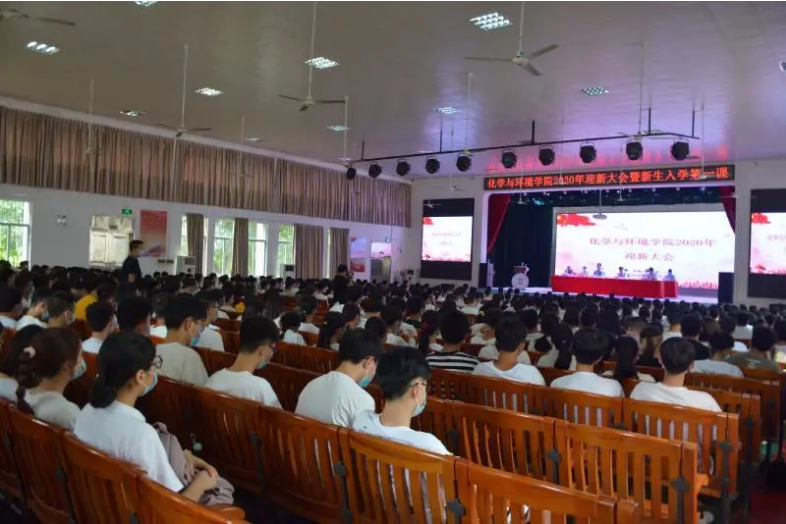 9月15日下午,化学与环境学院在湖光校区小礼堂召开2020级迎新大会暨新生入学第一课。学院领导班子、各教学系和实验中心主任、新生班主任、辅导员、2020级本科学生约580人参加会议。会议由学院党委副书记柯伟主持。
