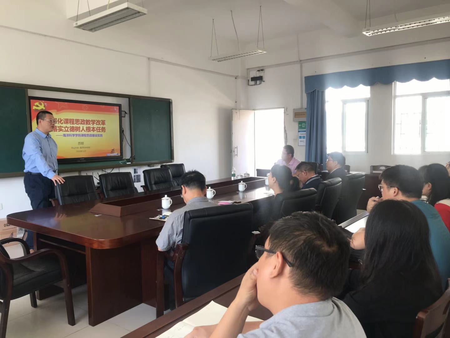 为深化课程思政教学改革,提升专业教师队伍的思政融合教学水平,11月12日上午,化学与环境学院邀请了中山大学海洋科学学院副院长苏明教授,在湖光校区第三实验楼B302室作题为“深化课程思政教学改革,落实立德树人根本任务”的经验交流,会议由学院副院长赵辉教授主持。