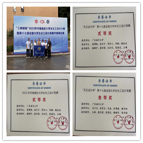 8月16-22日,由中国化工学会、中国化工教育协会主办,中国石油大学(华东)承办,中国石油大学(北京)协办的“天正设计杯”第十七届全国大学生化工设计竞赛全国总决赛顺利举办。我校化学与环境学院的“励腈图制”队(队员:翁博雅、殷活宁、贺怡心、刘畅、鲍欣欣,指导教师:谢翔宇、康信煌、孔松芝、张国光、王頔)作品获全国二等奖,华南赛区二等奖,我校化学与环境学院的另一支队伍,“亮腈腈”队(队员:吕子杰、植育达、吴晶、朱璋渝、谢宇桐)作品获得全国三等奖。