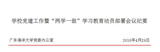 4月29日下午,关志强书记在湖光校区行政楼五楼会议室主持召开了学校党建工作暨“两学一做”学习教育动员部署会议。会议纪要如下:
